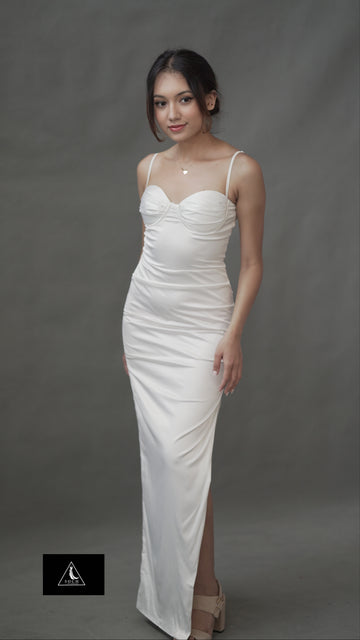 White full length Satin slit dress.ย