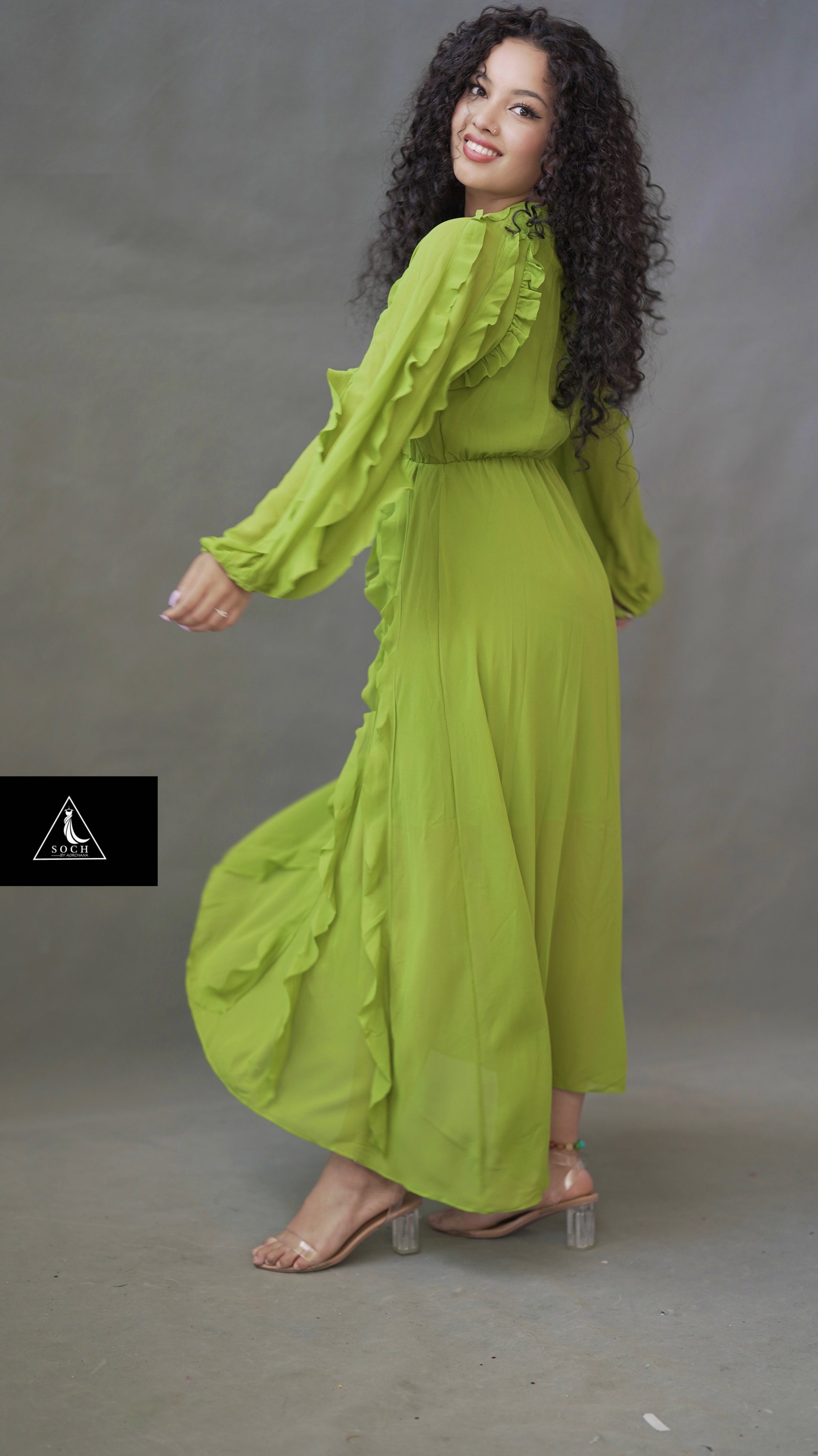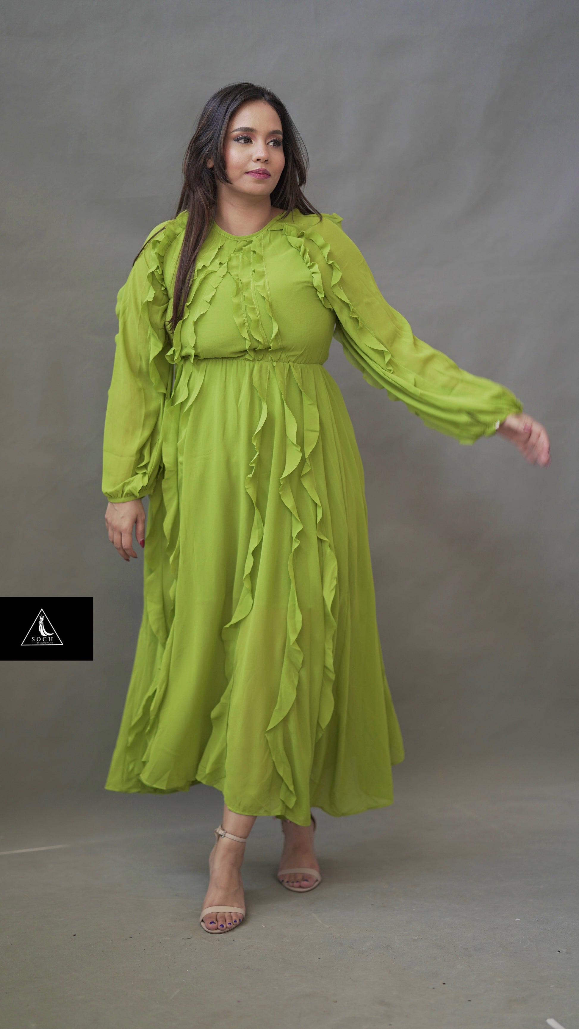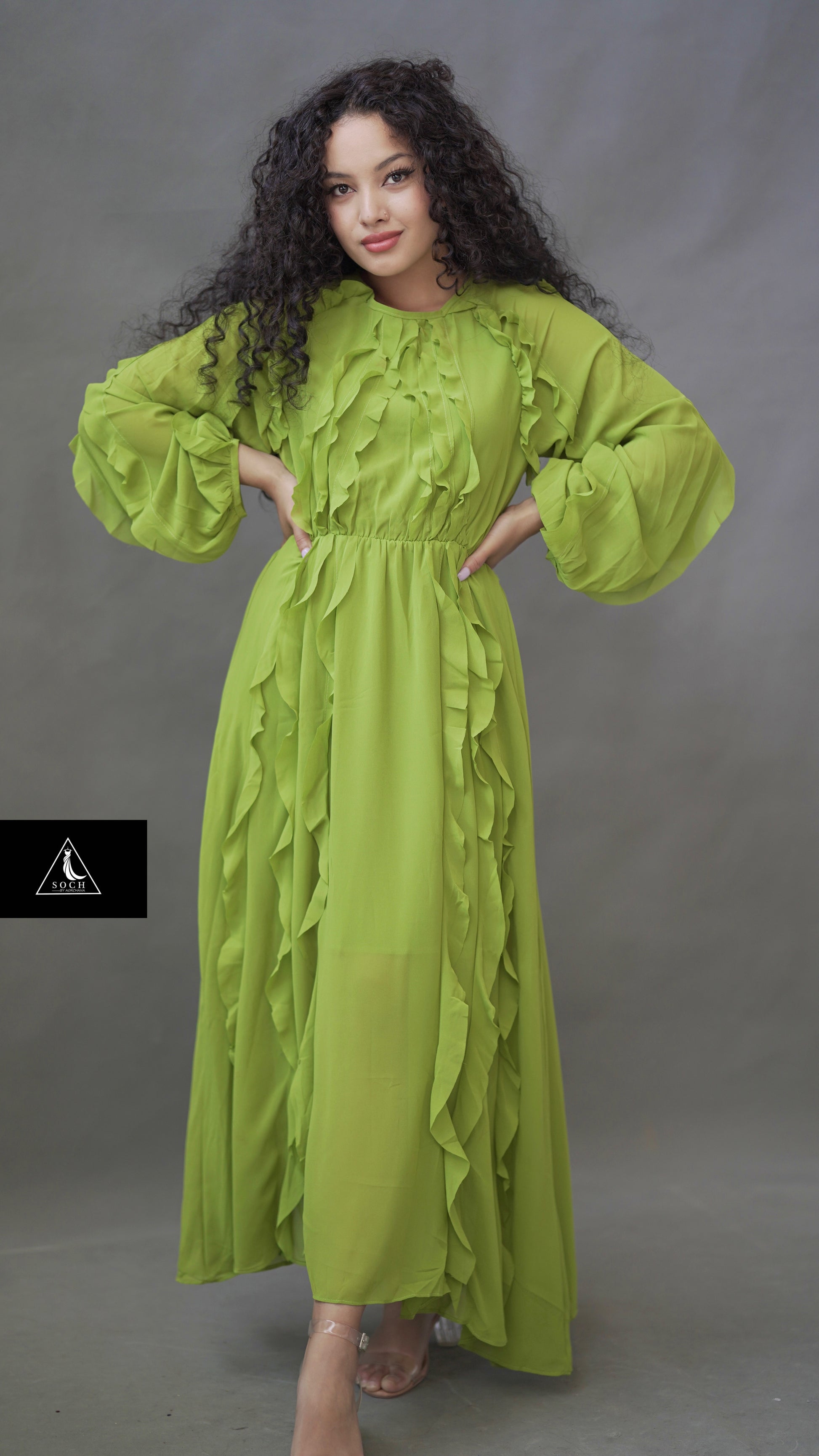 Sweet fungus edge puff sleeves holiday one size dress. Models in the picture are size small and large.