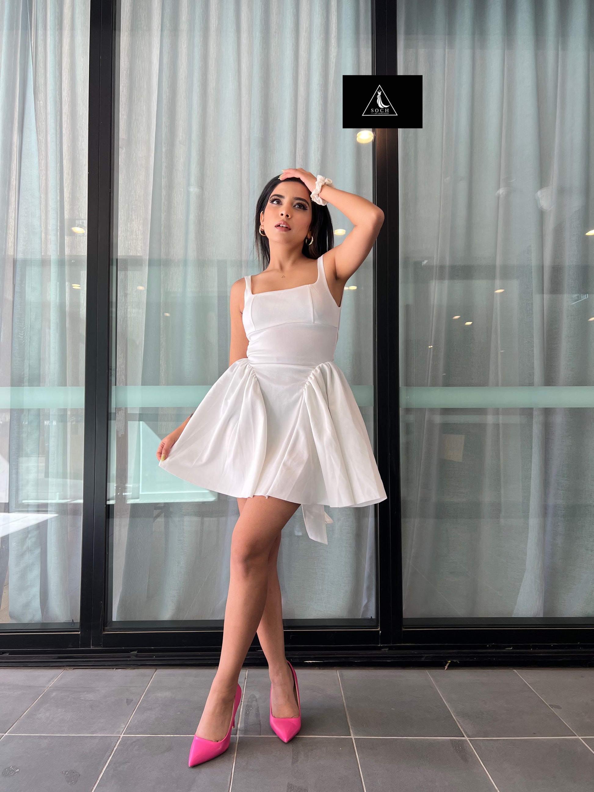 White mini dress dress with the bow.